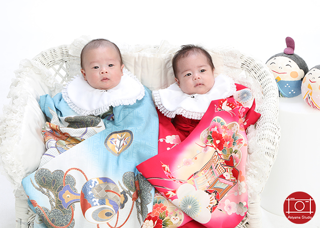 • 双子のお宮参り撮影。八王子の写真スタジオ、写真館アキヤマスタジオ