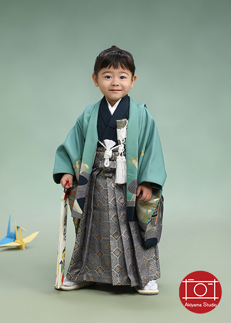 3才用の羽織・袴を着て、落ち着いた表情でかっこいいです^^