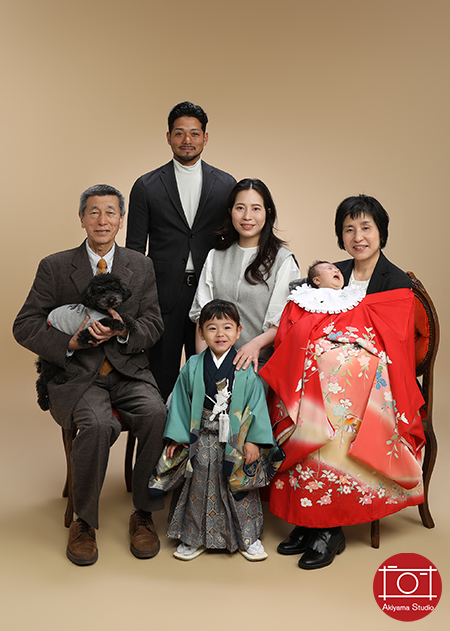 最後はわんちゃんも一緒に、ご家族みんなで記念の一枚。